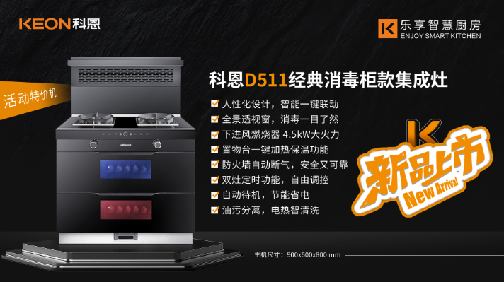 在科恩D511消毒柜款集成灶的多重安全保障技術加持下,放心大膽的讓孩子們感受烹飪樂趣,自己動手,自立自強,從學會下廚開始!