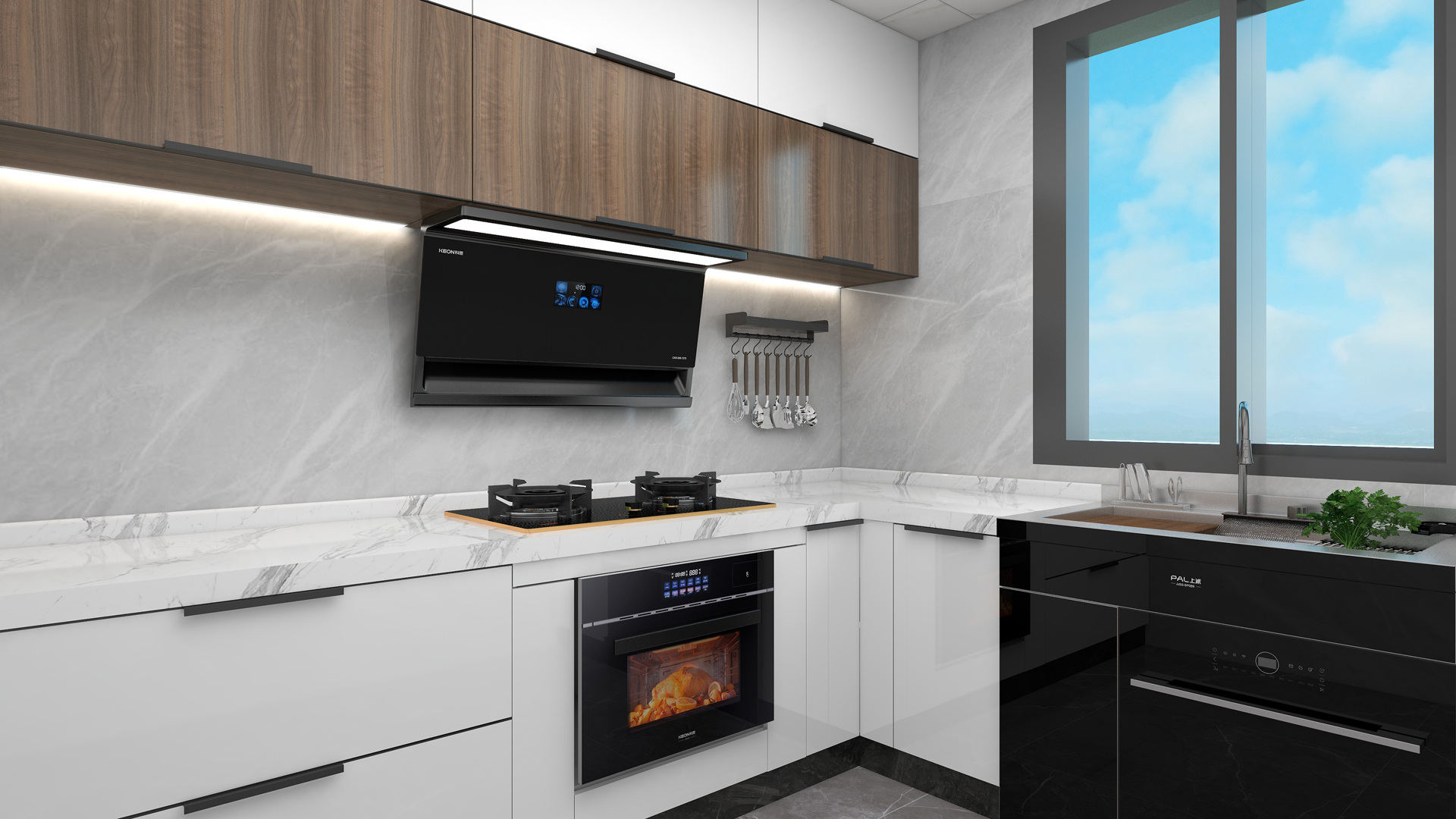性能方面,科恩 7270 煙機(jī)堪稱 “凈煙利器”。頂側(cè)雙吸設(shè)計(jì)能精準(zhǔn)直卷雙灶濃煙,實(shí)現(xiàn) 1+1>2 的強(qiáng)力凈煙效果;25m³/min 的大吸力搭配 895×468mm 超寬屏攏煙,即使是中式爆炒也能輕松應(yīng)對,讓廚房空氣時刻清新。三檔風(fēng)量隨心調(diào)節(jié),無論是小火慢燉還是大火爆炒,都能一鍵匹配最佳吸力,瞬間煥新廚房空氣。智能操控,便捷下廚。智能幻彩屏搭配模塊化按鍵,功能區(qū)顯示直觀清晰,操作簡單易懂,廚房新手也能輕松上手。揮手智控科技,零觸碰即可操控開關(guān)機(jī)與調(diào)節(jié)風(fēng)量,油污不沾面板。時間顯示功能,精準(zhǔn)監(jiān)控烹飪時間,助你更好管理烹飪流程,下廚有條不紊,告別手忙腳亂。