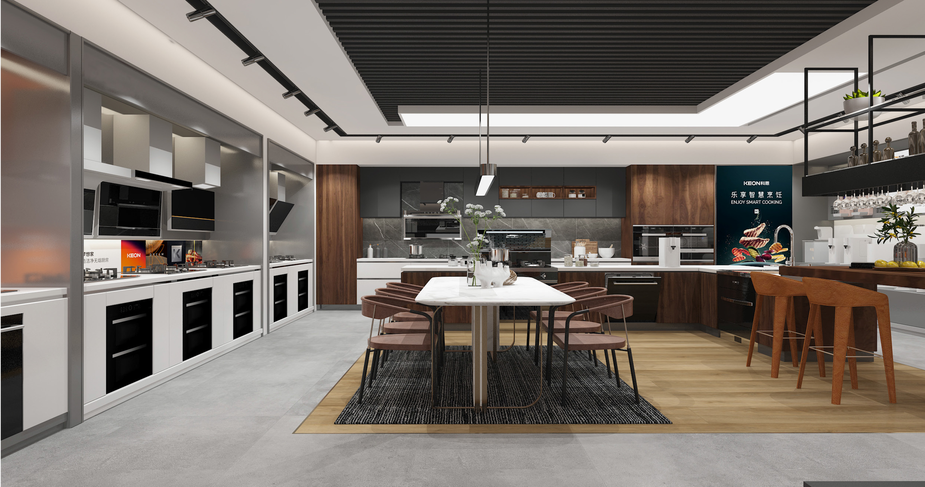 科恩始終以創(chuàng)新驅(qū)動(dòng)產(chǎn)品迭代,構(gòu)建覆蓋全廚房的產(chǎn)品體系。集成灶、油煙機(jī)、燃?xì)庠睢?/span>消毒柜、凈水器、集成烹飪中心等全品類廚電,搭載自主研發(fā)的專利技術(shù),兼具節(jié)能、環(huán)保、智能等優(yōu)勢(shì),貼合現(xiàn)代家庭的烹飪需求。同時(shí),科恩突破傳統(tǒng)門(mén)店模式,通過(guò)模塊化設(shè)計(jì)將產(chǎn)品與開(kāi)放式廚房場(chǎng)景融合,打造集展示、體驗(yàn)、社交于一體的新型終端。消費(fèi)者可沉浸式感受產(chǎn)品性能,門(mén)店則變身“廚房生活體驗(yàn)館”,有效提升成交率與用戶粘性。