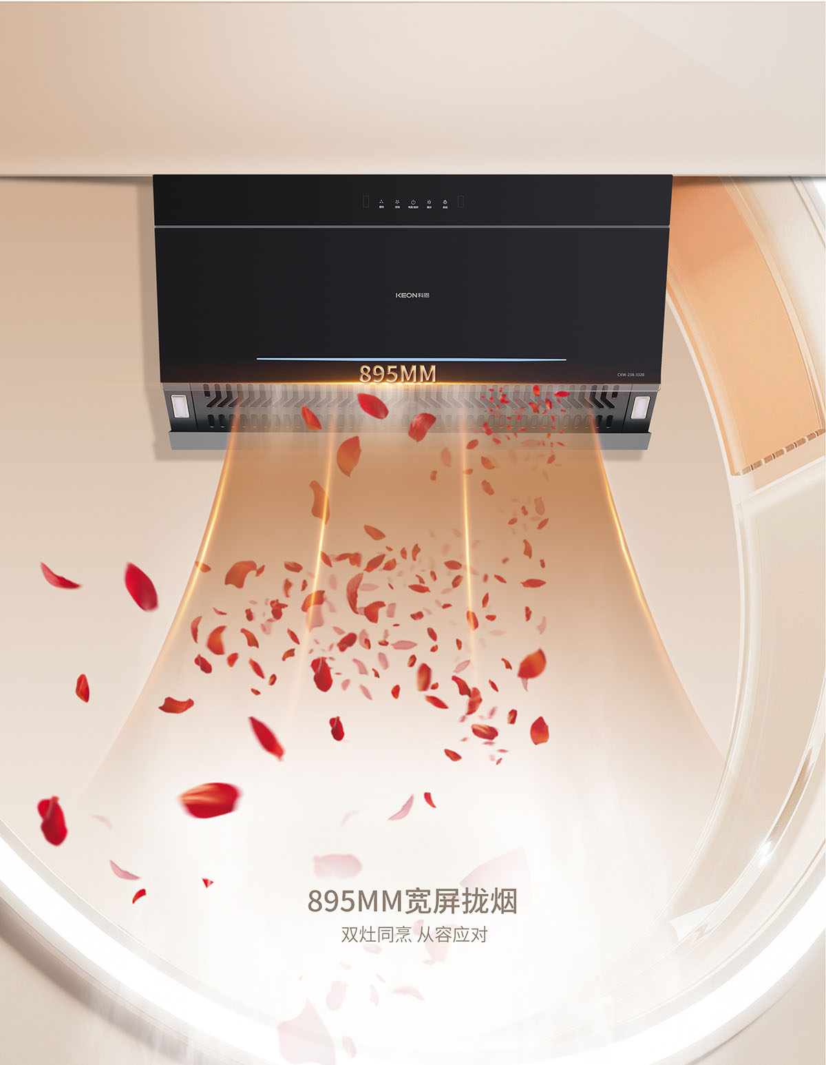 895MM寬屏攏煙,從容應對雙灶同烹
