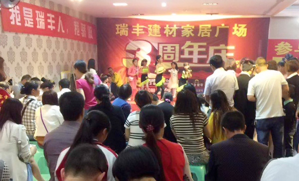 5月31日,位于貴州普定的瑞豐建材舉行了盛大的三周年慶典活動。本次周年慶,瑞豐建材全場商家共同參與,各種大獎全力鉅獻,現場人潮涌動,熱鬧非凡。